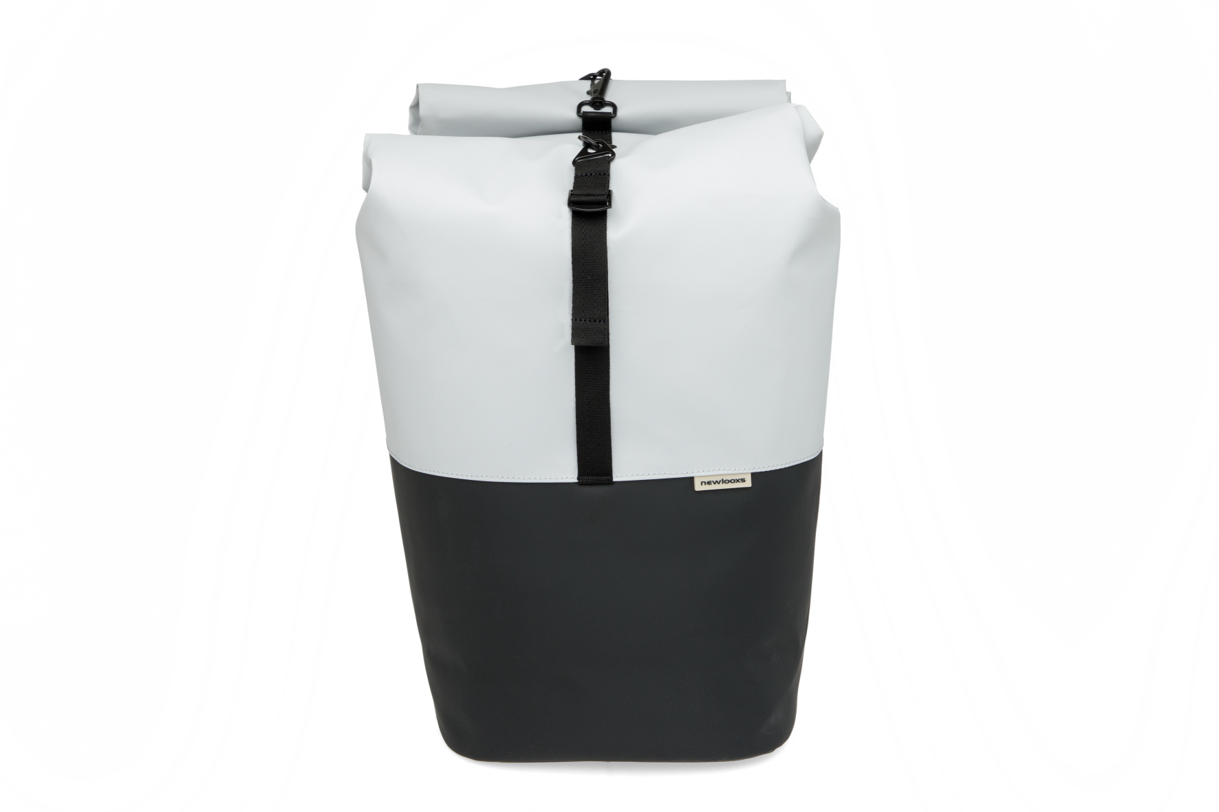 The Nyborg Double pannier has a hip design with a convenient buckle closure, specially designed to be easily fastened and tightened with one hand. The snaps ensure that the roll top stays securely closed while cycling. In addition, the pannier features reflective elements on both sides, making you highly visible in the dark.