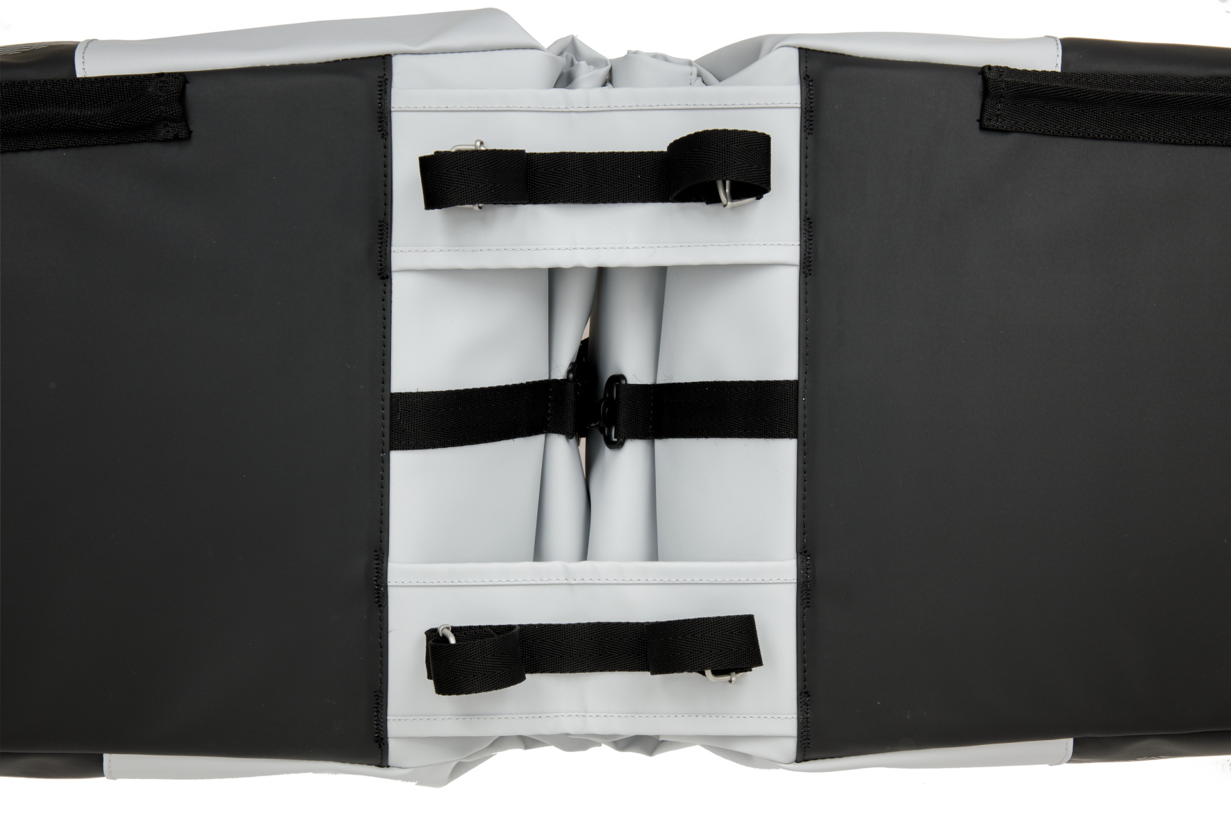 The Nyborg Double pannier is easily attached to the bike rack using straps. This makes the bag suitable for almost all bikes, including electric bikes. For extra stability and to prevent the bags from hitting the wheel, you can use the separately available New Looxs spacer. You insert this into the strips on the back of the bag. This keeps the bag securely in place, even during long rides or heavy loads. You can additionally secure the pannier to the side of the rack with a Velcro strip.
