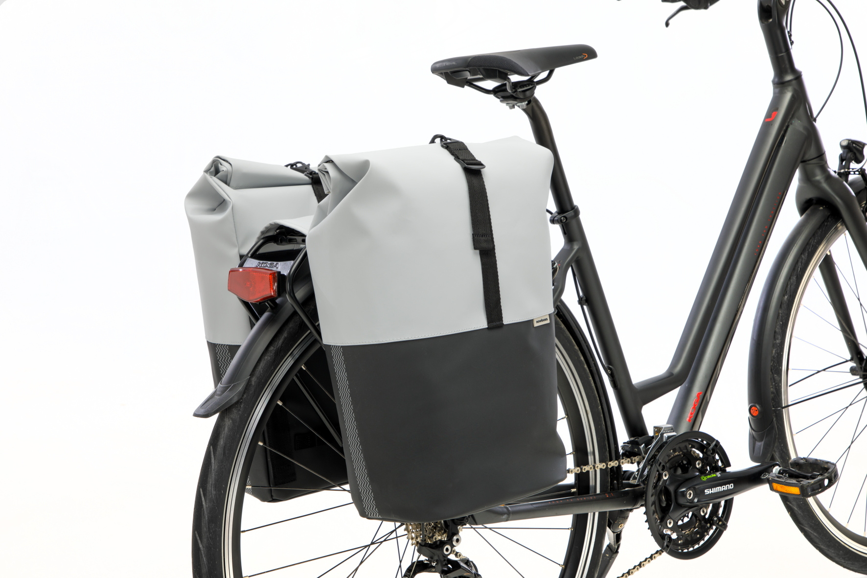 With the Nyborg Double pannier from New Looxs you are assured of ample storage space, durability and a fashionable design. These spacious double panniers are made of waterproof 500D polyester with a TPU coating, a particularly strong and high-quality material. This keeps your belongings dry even during a small rain shower. Whether you are running errands, cycling to work or taking a long bike ride, the Nyborg Double offers all the functionality you need. The bag is equipped with universal straps, making it suitable for most e-bikes as well.